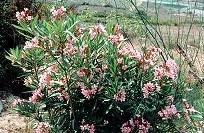 Auch hier zu Lande ist dieser Strauch als Zierpflanze in Gärten anzutreffen. Die buschig wachsende Pflanze erreicht eine Größe von zwei bis vier Meter. Ihre länglichen, dunkelgrünen Blätter sind 6 bis 15 Zentimeter lang. Meist sind die Blüten des Oleanders leuchtend rosa, in seltenen Fällen gibt es auch weiße Blüten. Auf Malta sah ich diese Pflanzenart auf meiner Wanderung von Bugibba nach Tal Qarbuni. (Tal Qarbuni, Juni 2001)