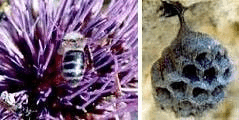 Das Land Malta ist für seinen schmackhaften Honig bekannt. Diesen Honig produzieren Heerscharen fleißiger Bienen (siehe linkes Foto, wilde Artischockenblüte mit einer Biene). Es finden sich jedoch auch überall verschiedene Wespenarten, die weithin sichtbar ihre Bauten plazieren (siehe Foto ganz rechts).